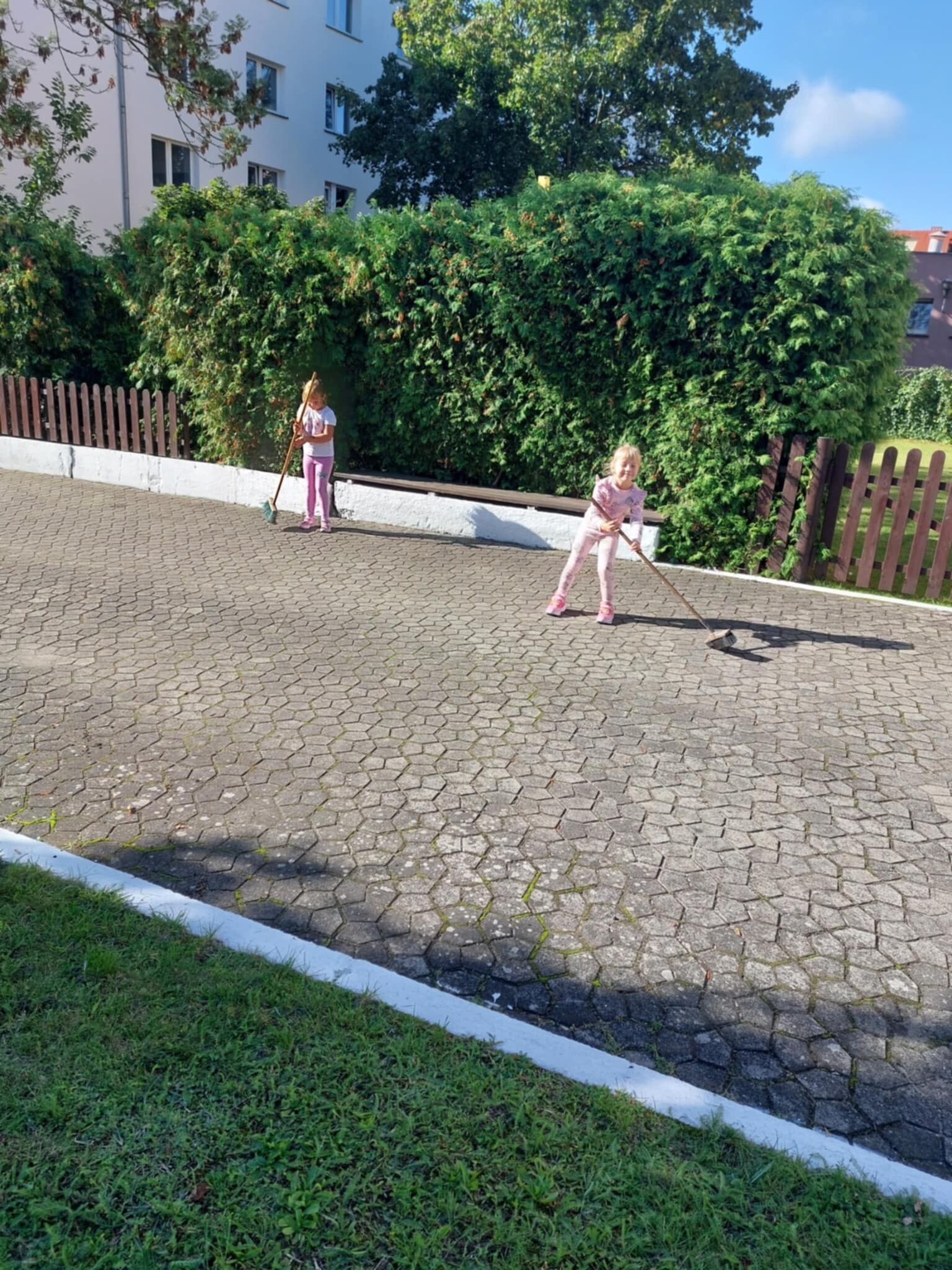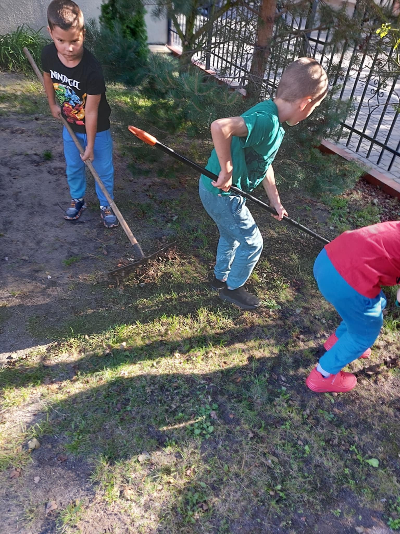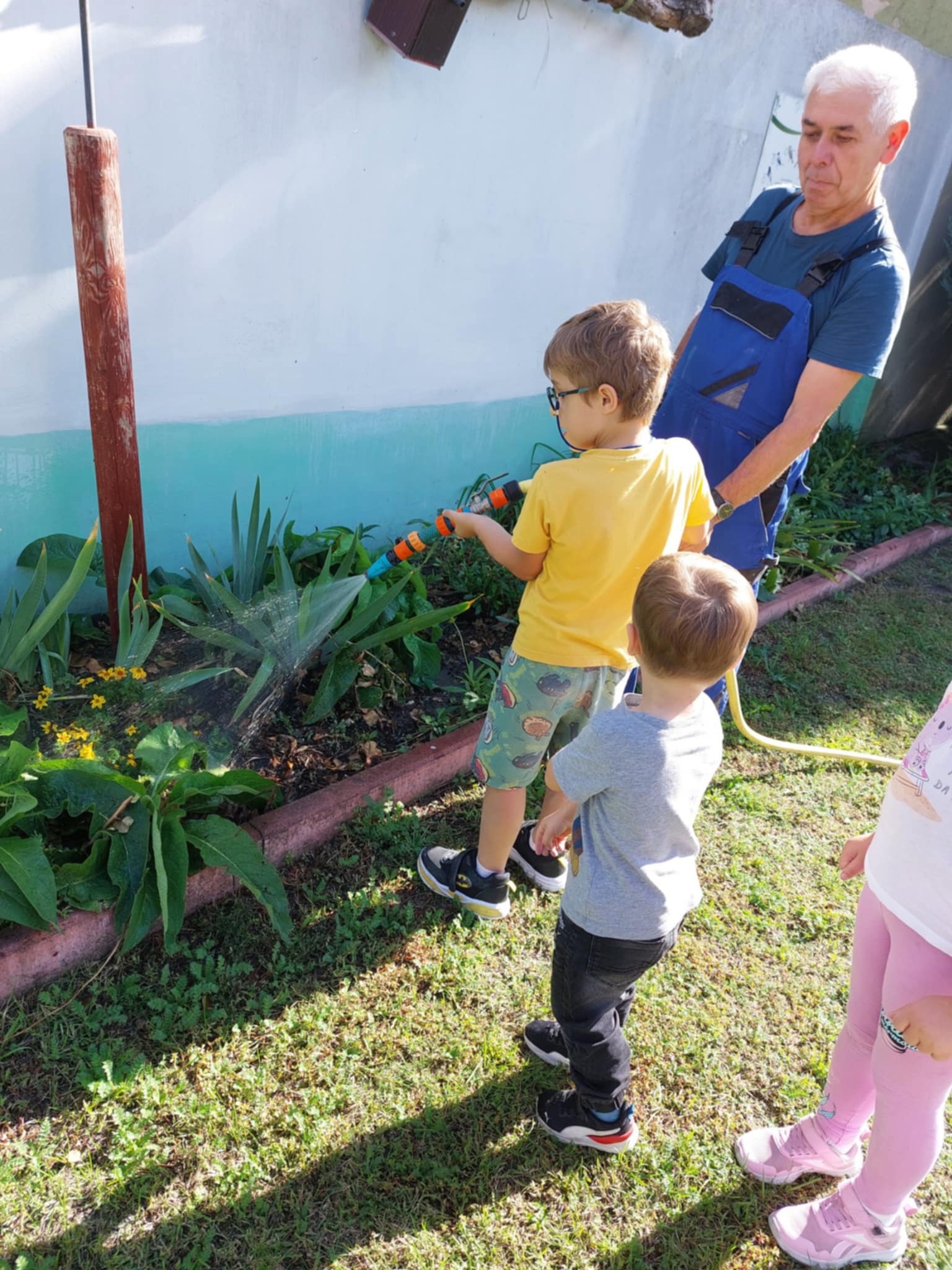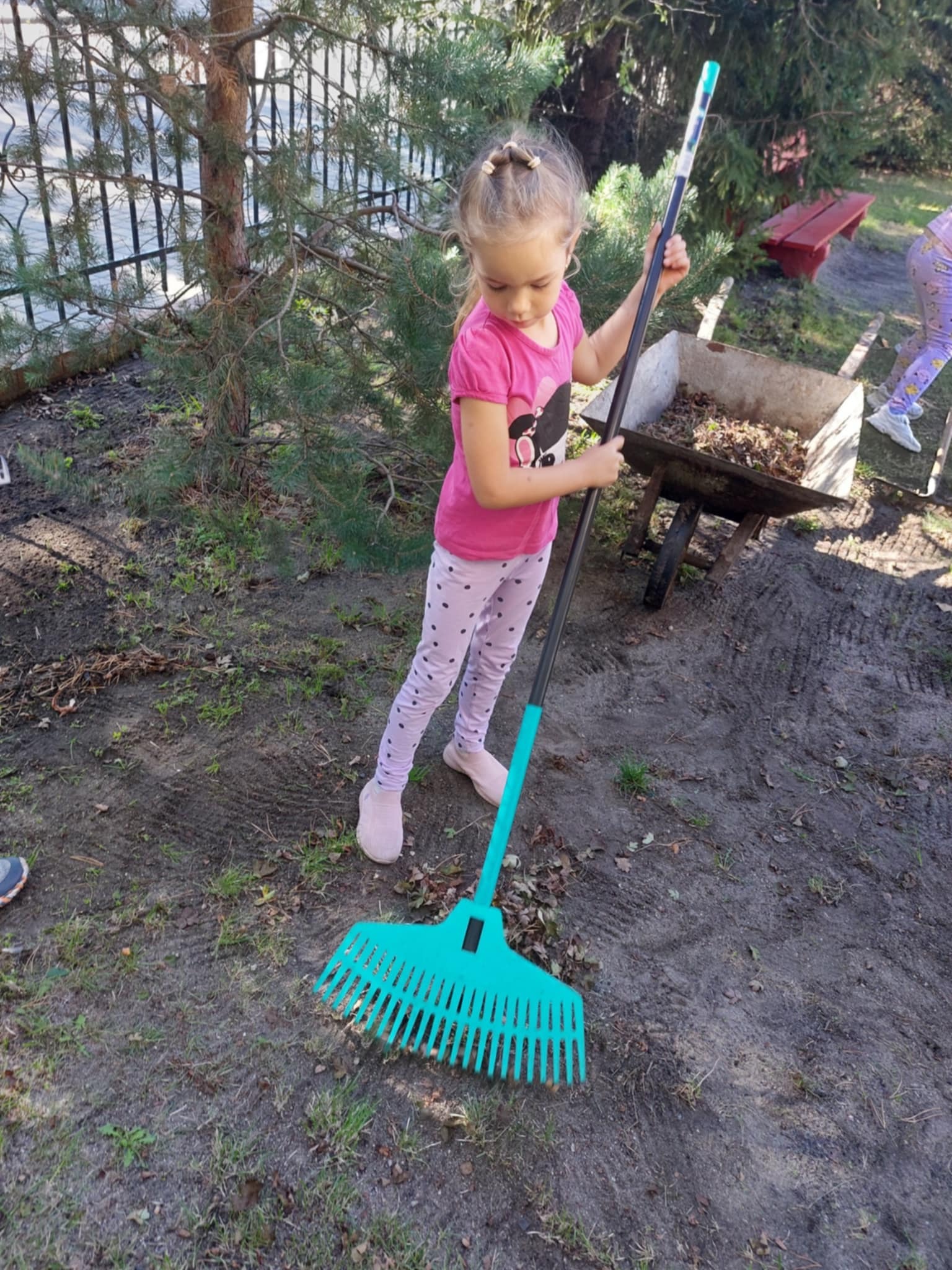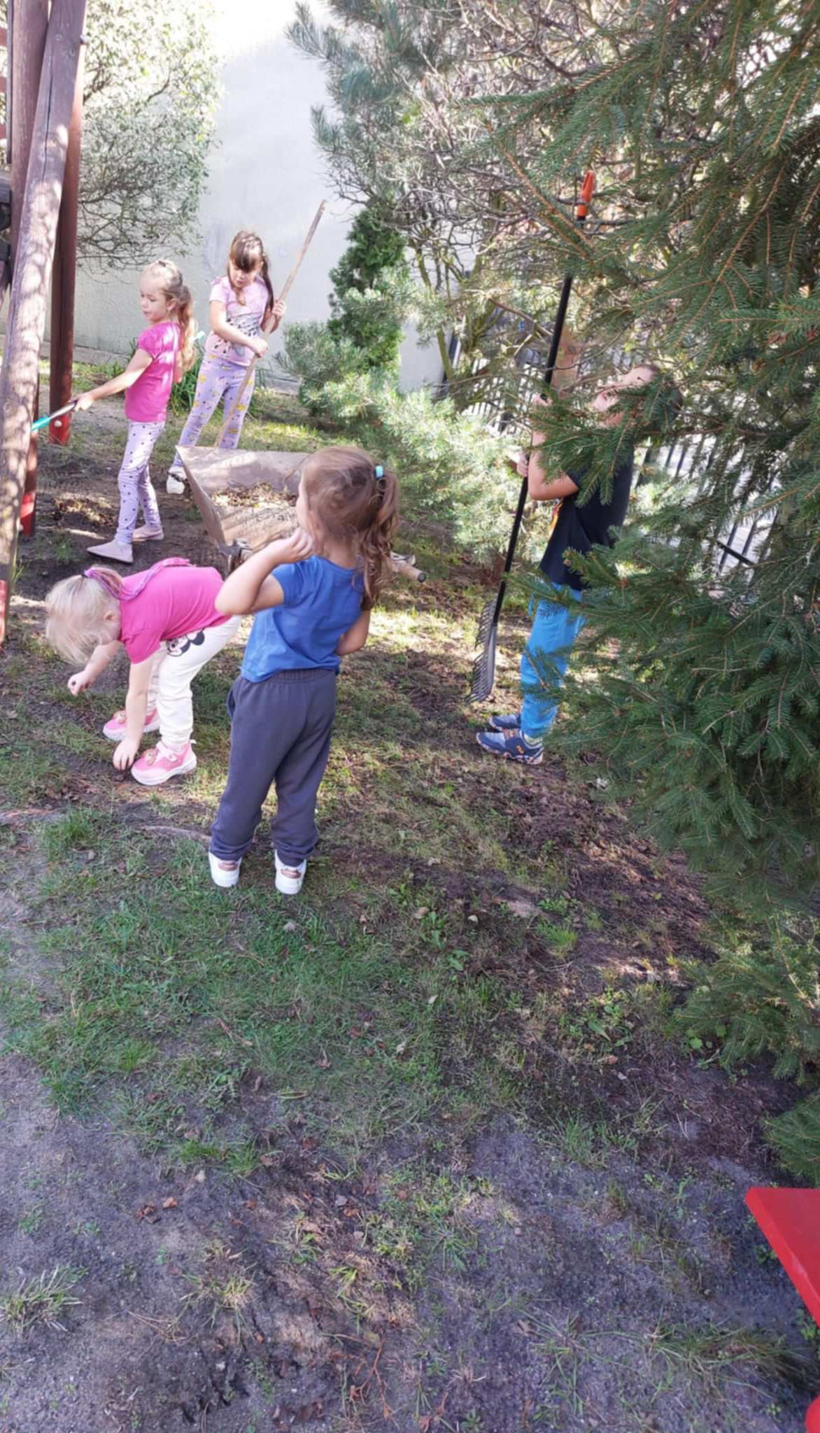 Nasze przedszkolaki wspólnie z paniami dbają o plac przedszkolny o rośliny w ogrodzie przedszkolnym.