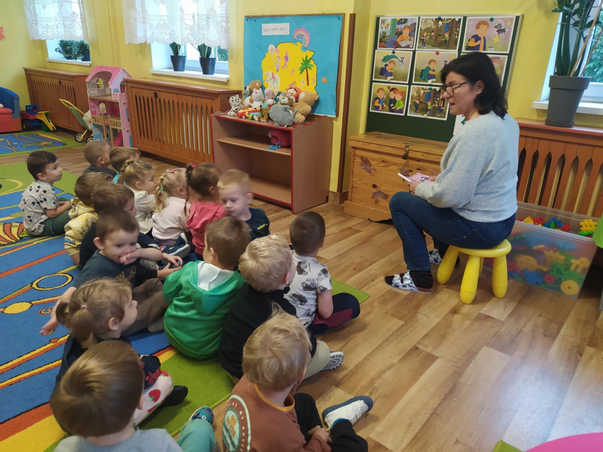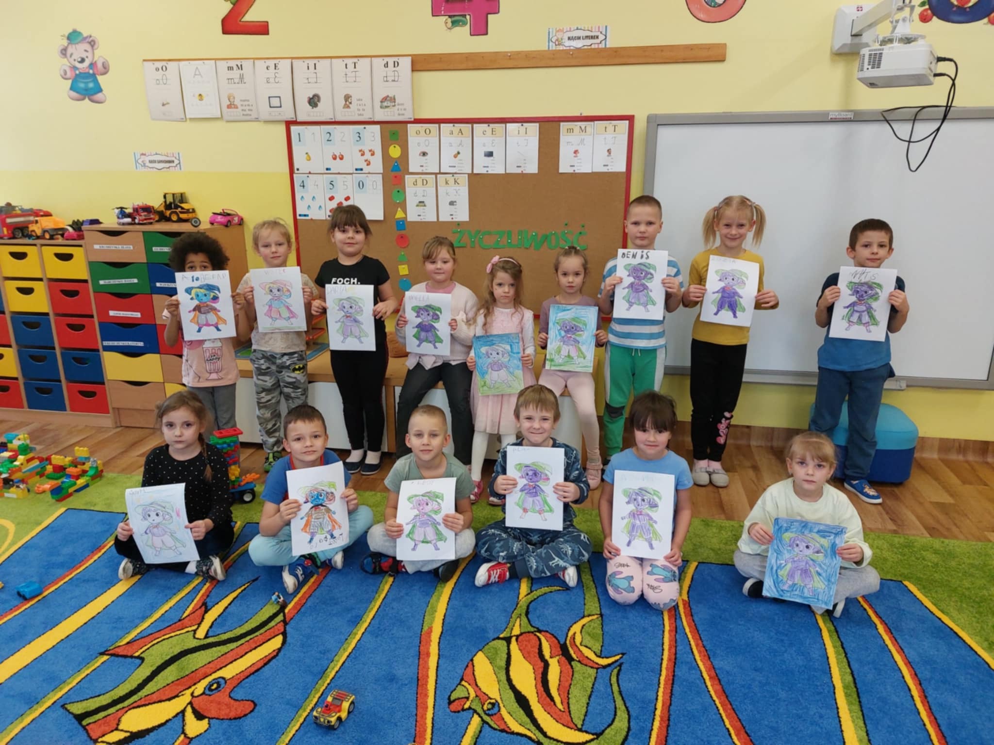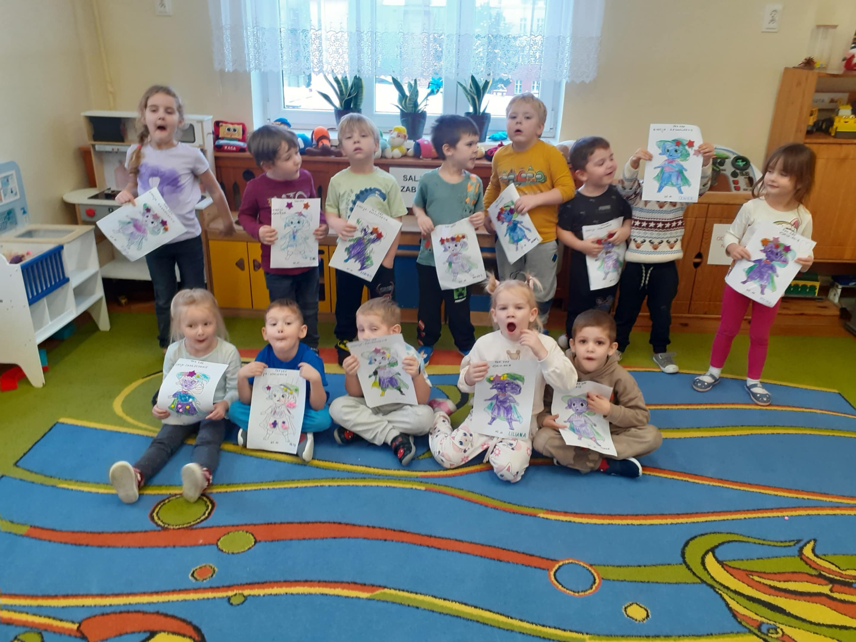 Realizując kolejny temat powiązany z emocjami dzieci okazywały zaskoczenie i zdziwienie. Były eksperymenty, pokazywanie min, kolorowanie obrazków oraz czytanie opowiadania i układanie historyjki obrazkowej.