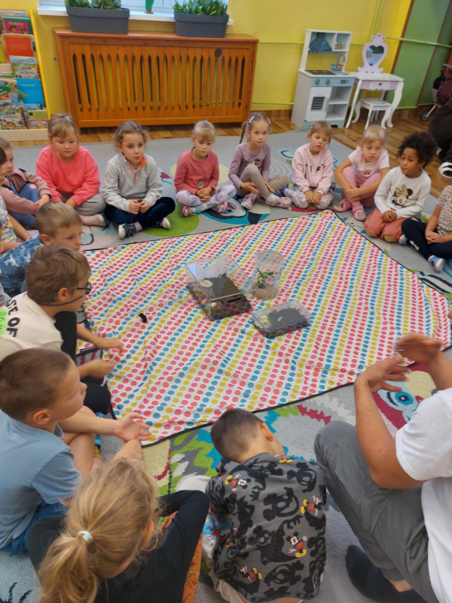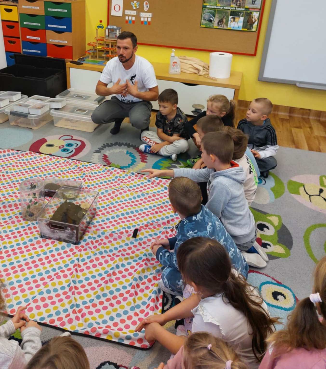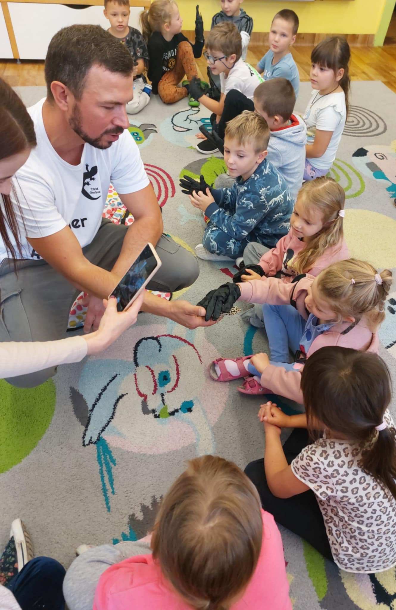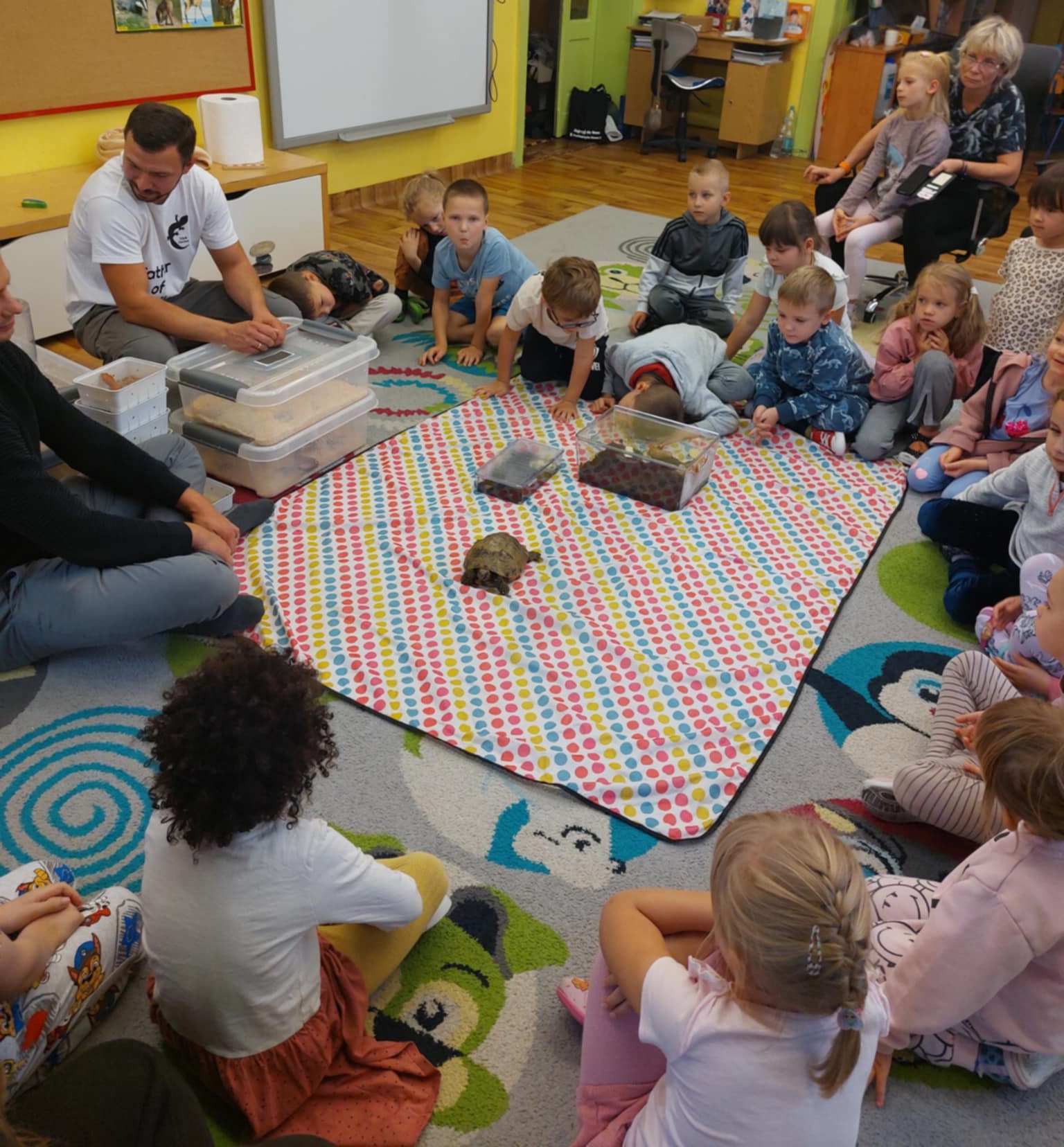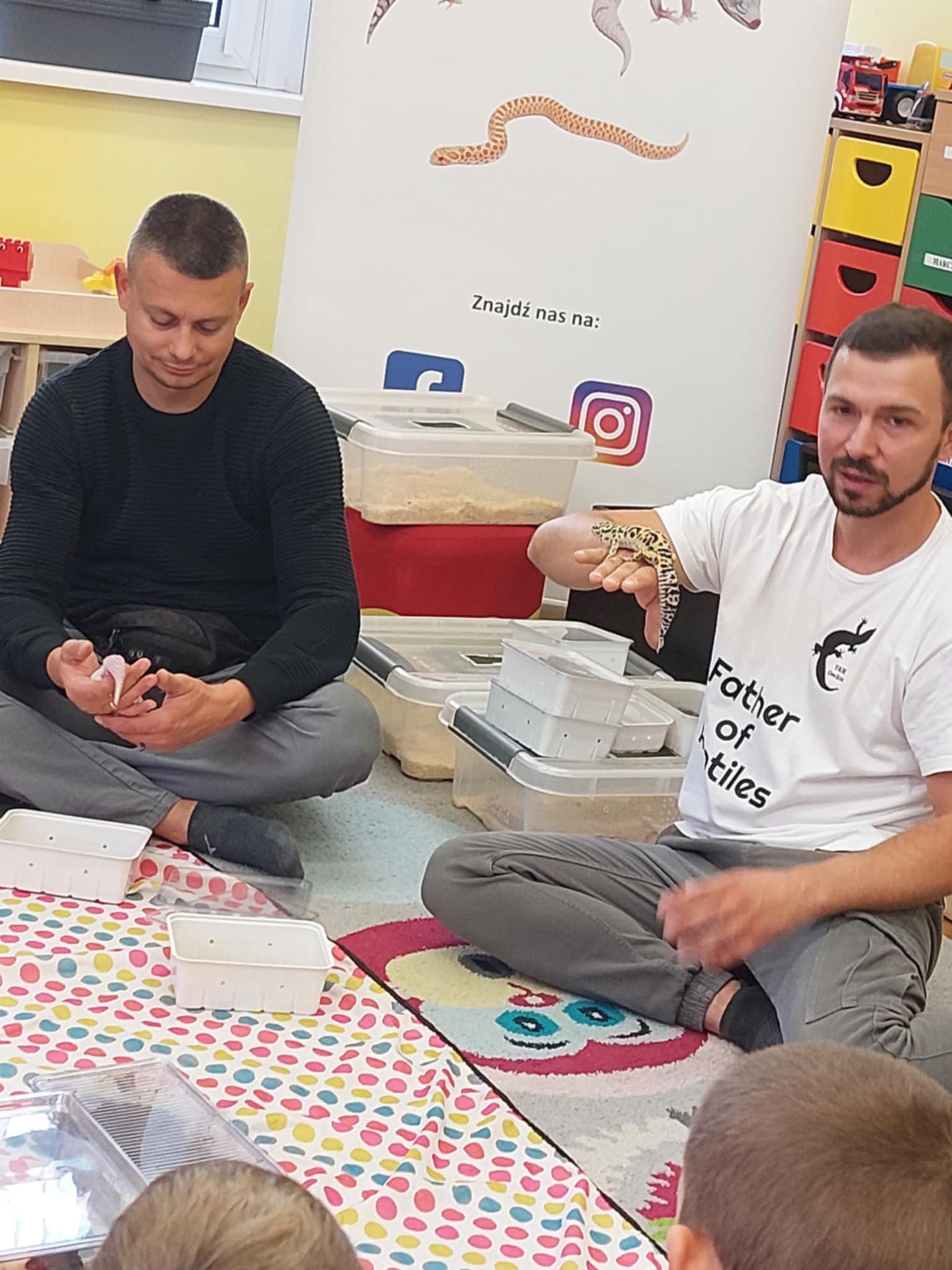 Pod bacznym okiem opiekunów p. Rafała oraz p. Tomasza dzieci miały wyjątkową okazję poznać życie i zwyczaje zmiennocieplnych gadów: gekonów, węży, ślimaków oraz żółwia. Bardzo dziękujemy za zorganizowanie spotkania p. Joannie
