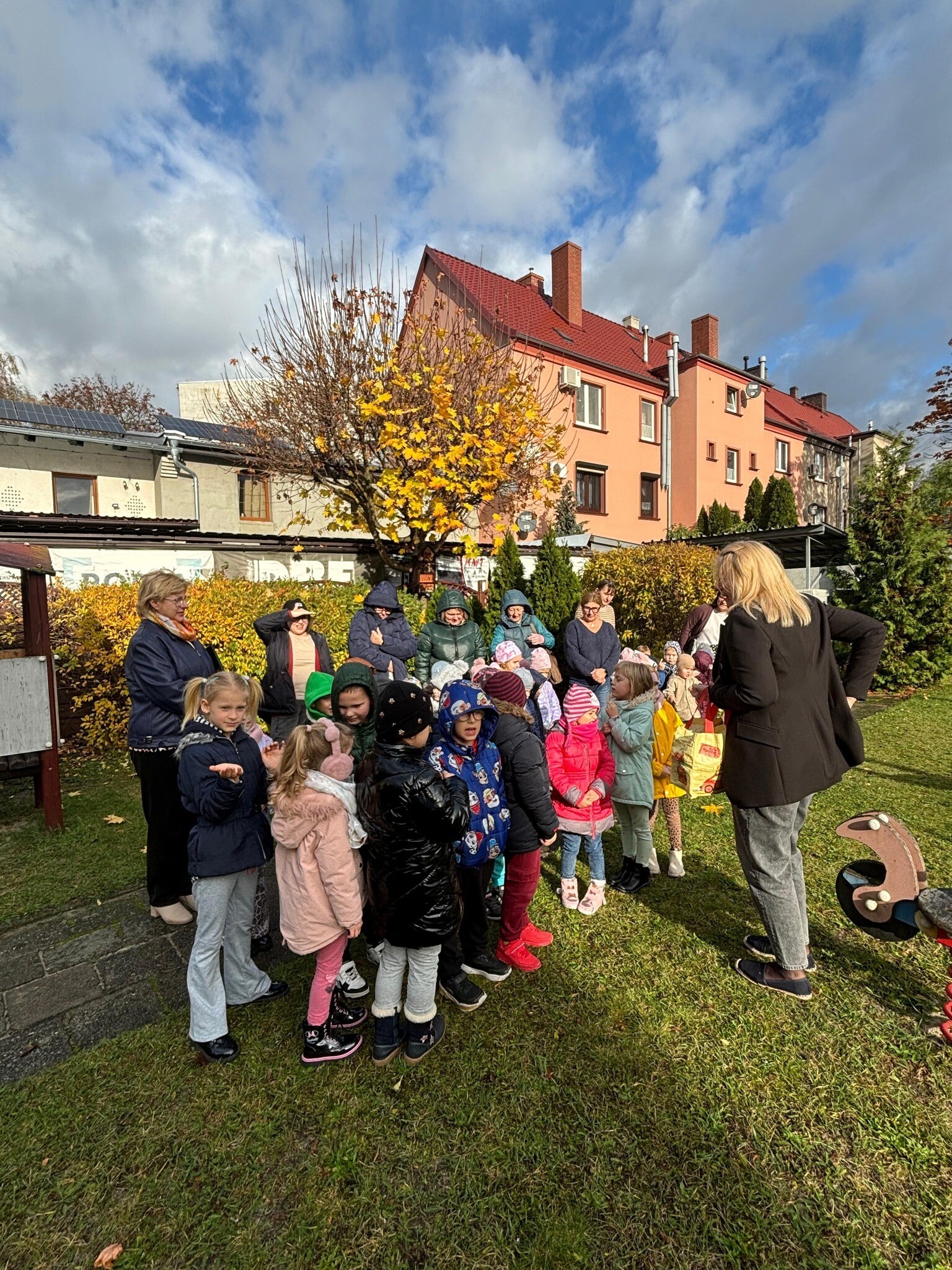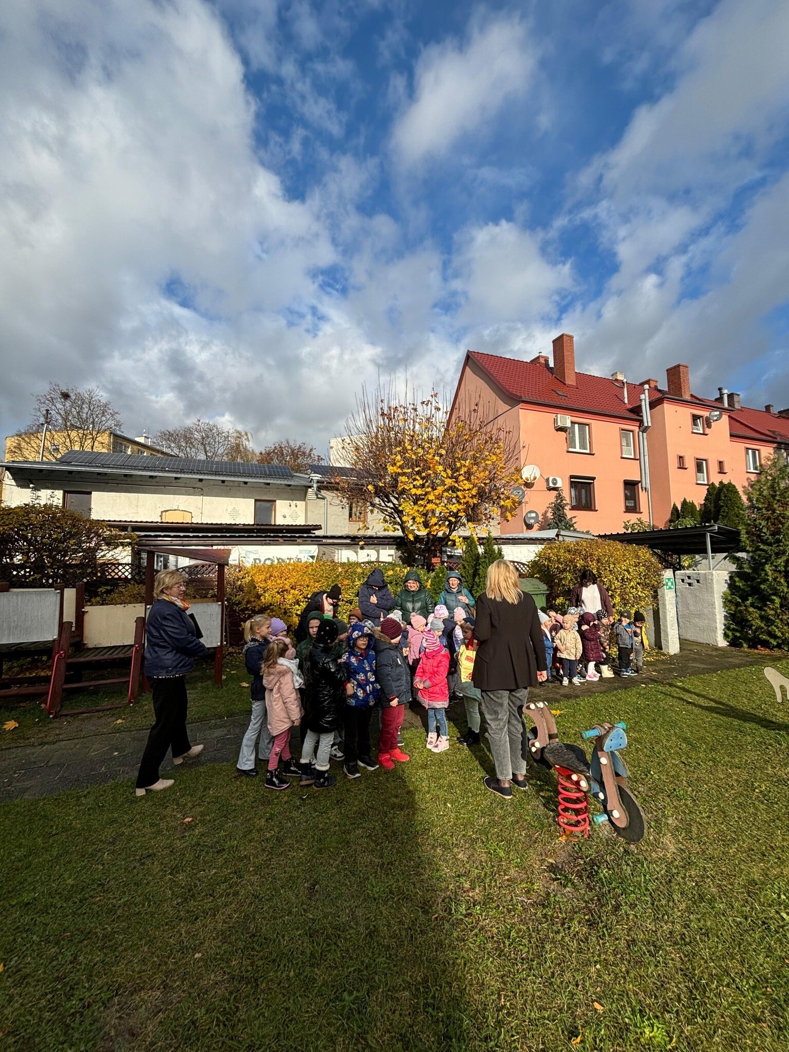 Po usłyszeniu sygnału alarmowego wszyscy sprawnie opuścili budynek przedszkolny i zgromadzili się w wyznaczonym miejscu zbiórki.
