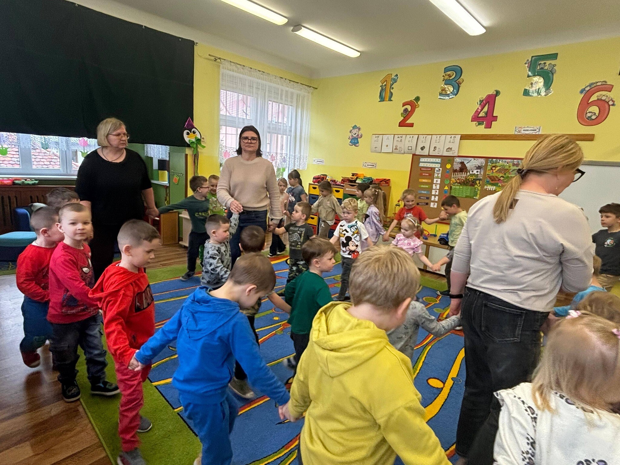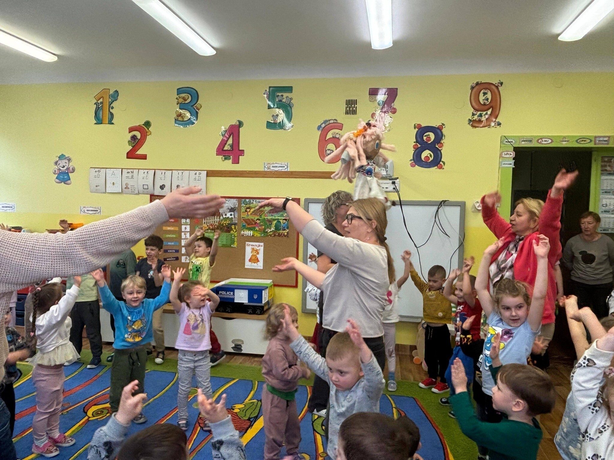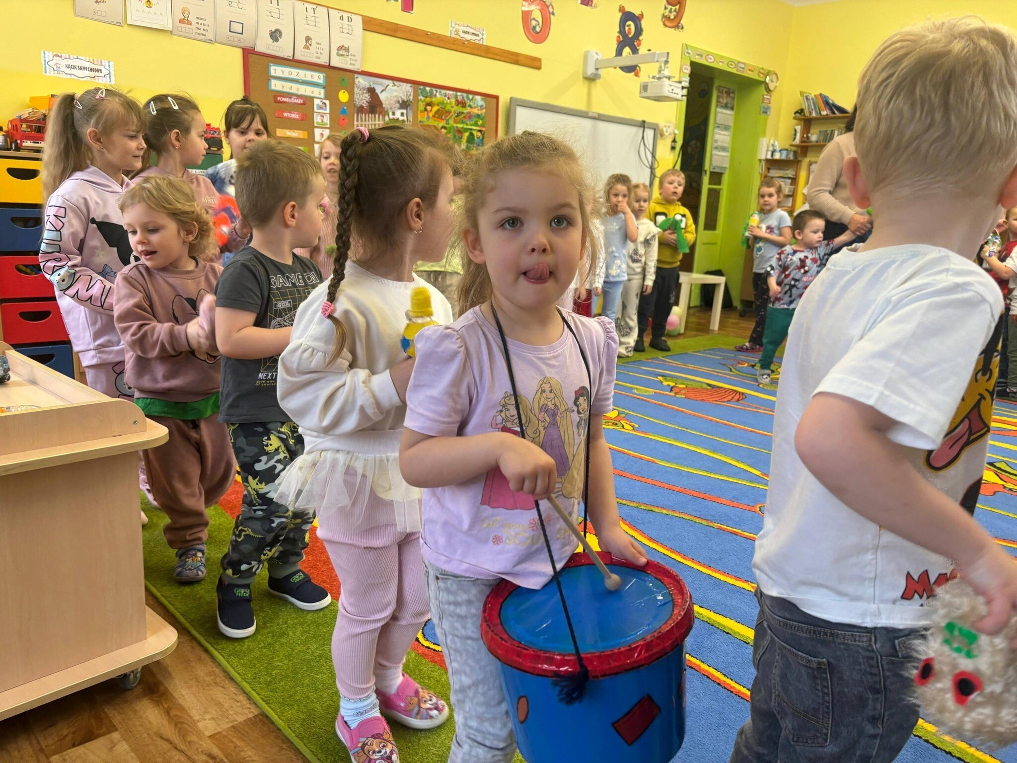 ,,Witamy wiosnę w kolorowych skarpetkach''. Trochę pogoda psikusa nam zrobiła. Dzieci okrzykami zimę pogoniły i do zabawy wiosnę zaprosiły.