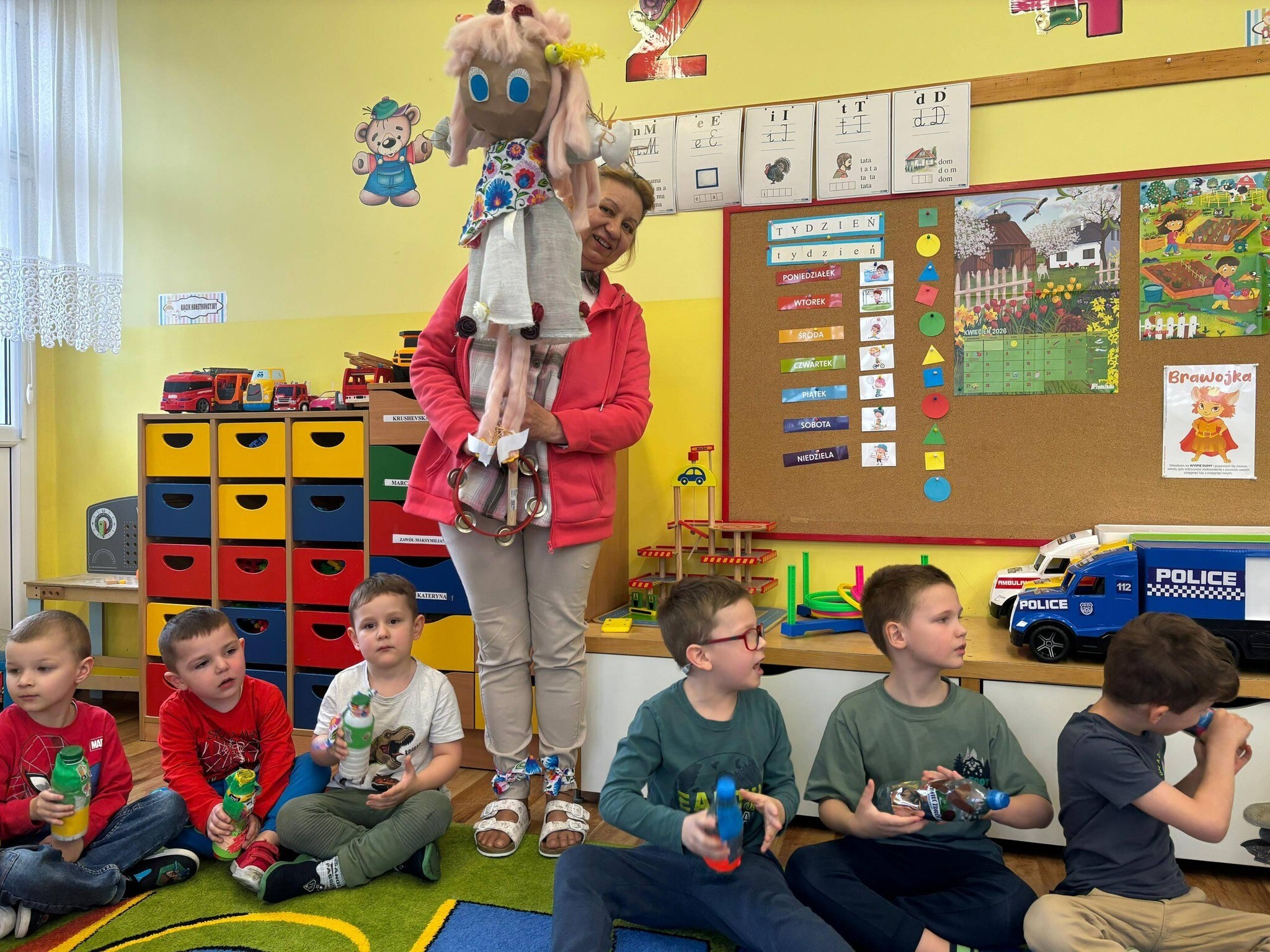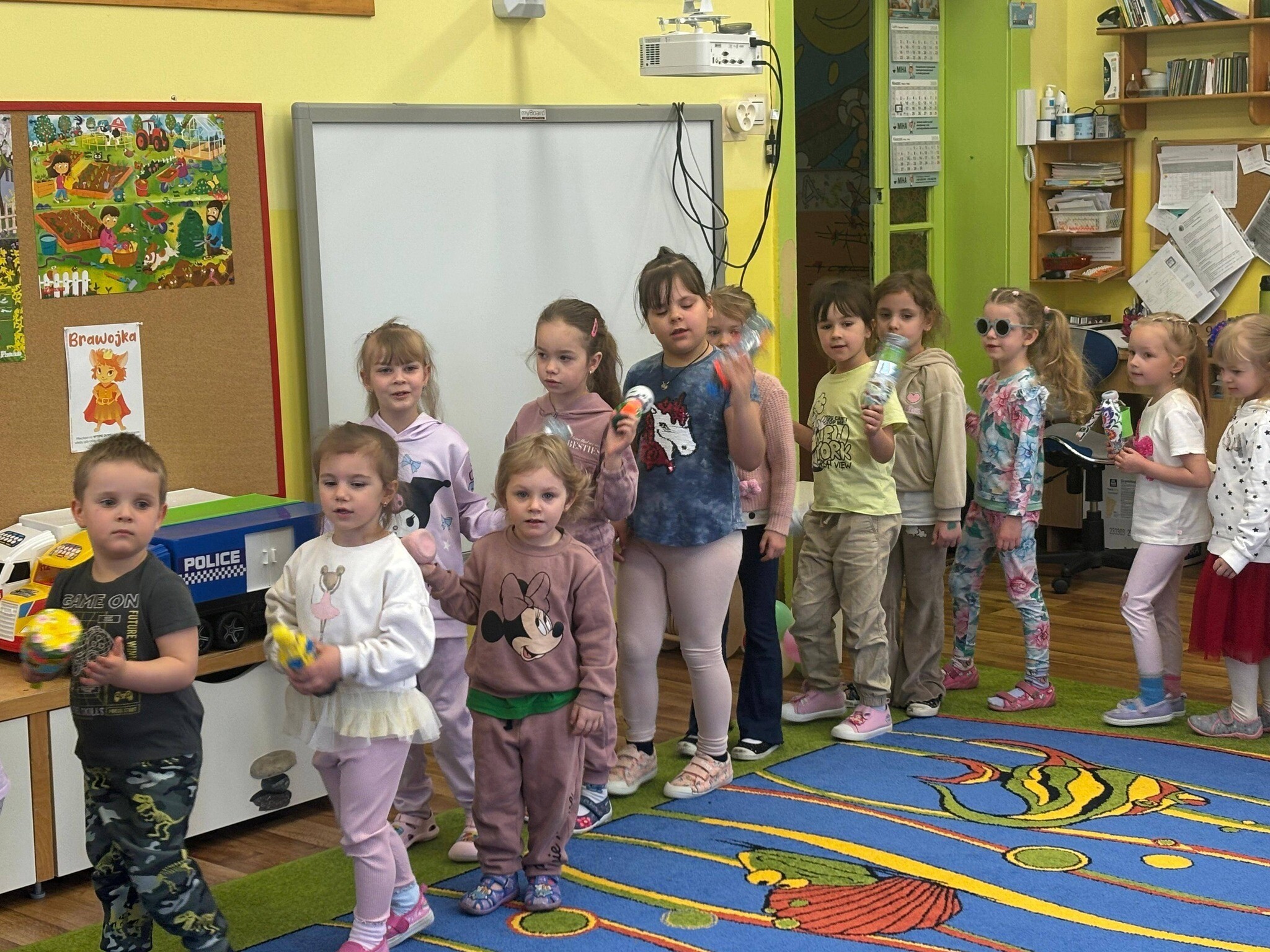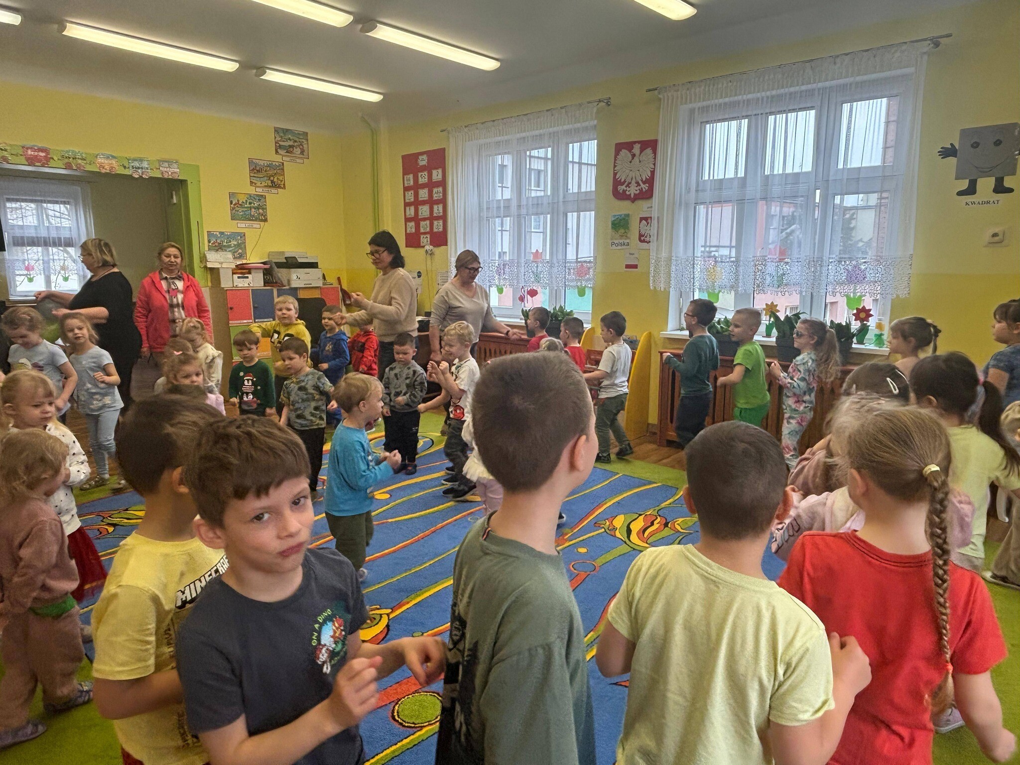 ,,Witamy wiosnę w kolorowych skarpetkach''. Trochę pogoda psikusa nam zrobiła. Dzieci okrzykami zimę pogoniły i do zabawy wiosnę zaprosiły.