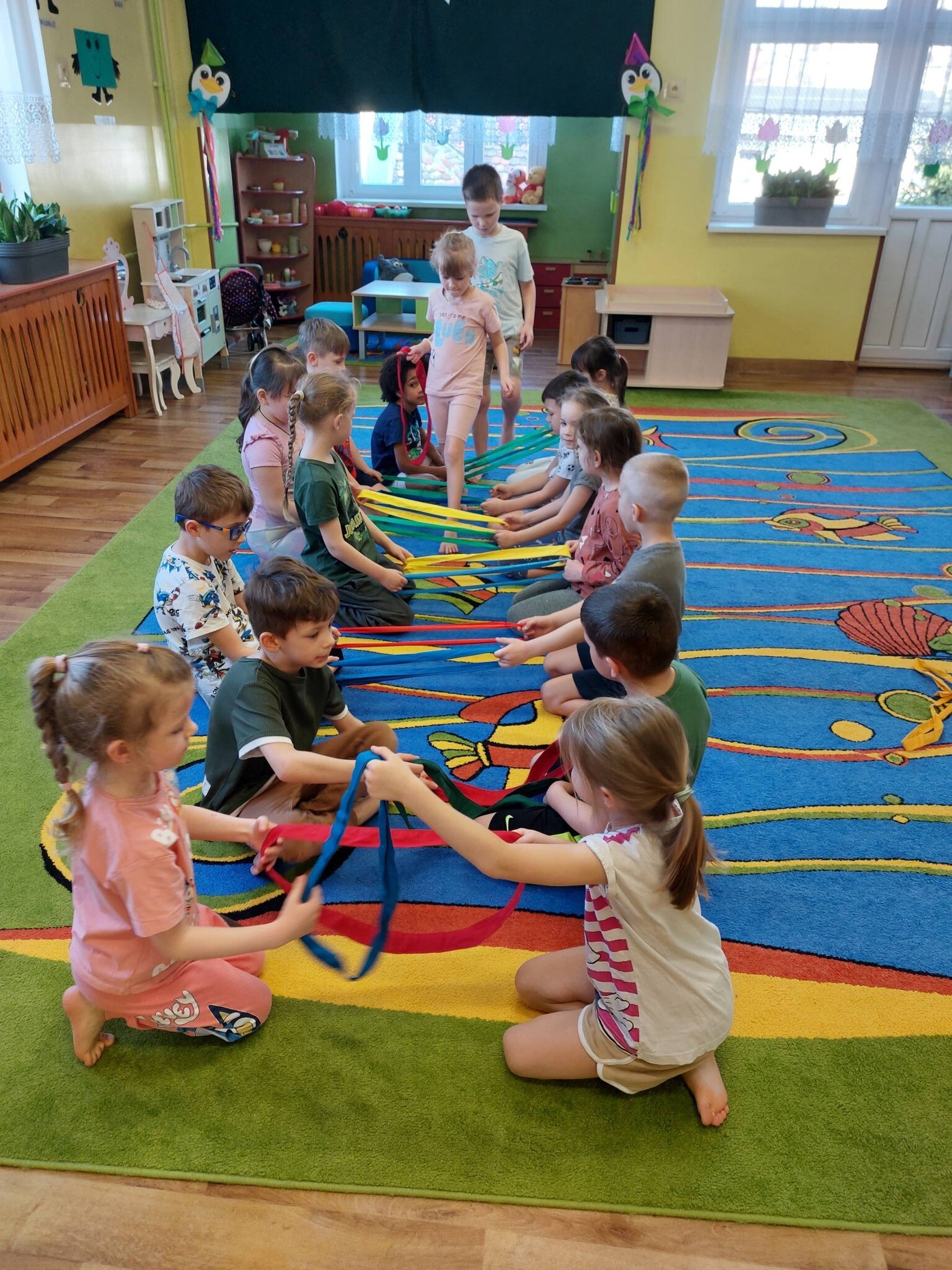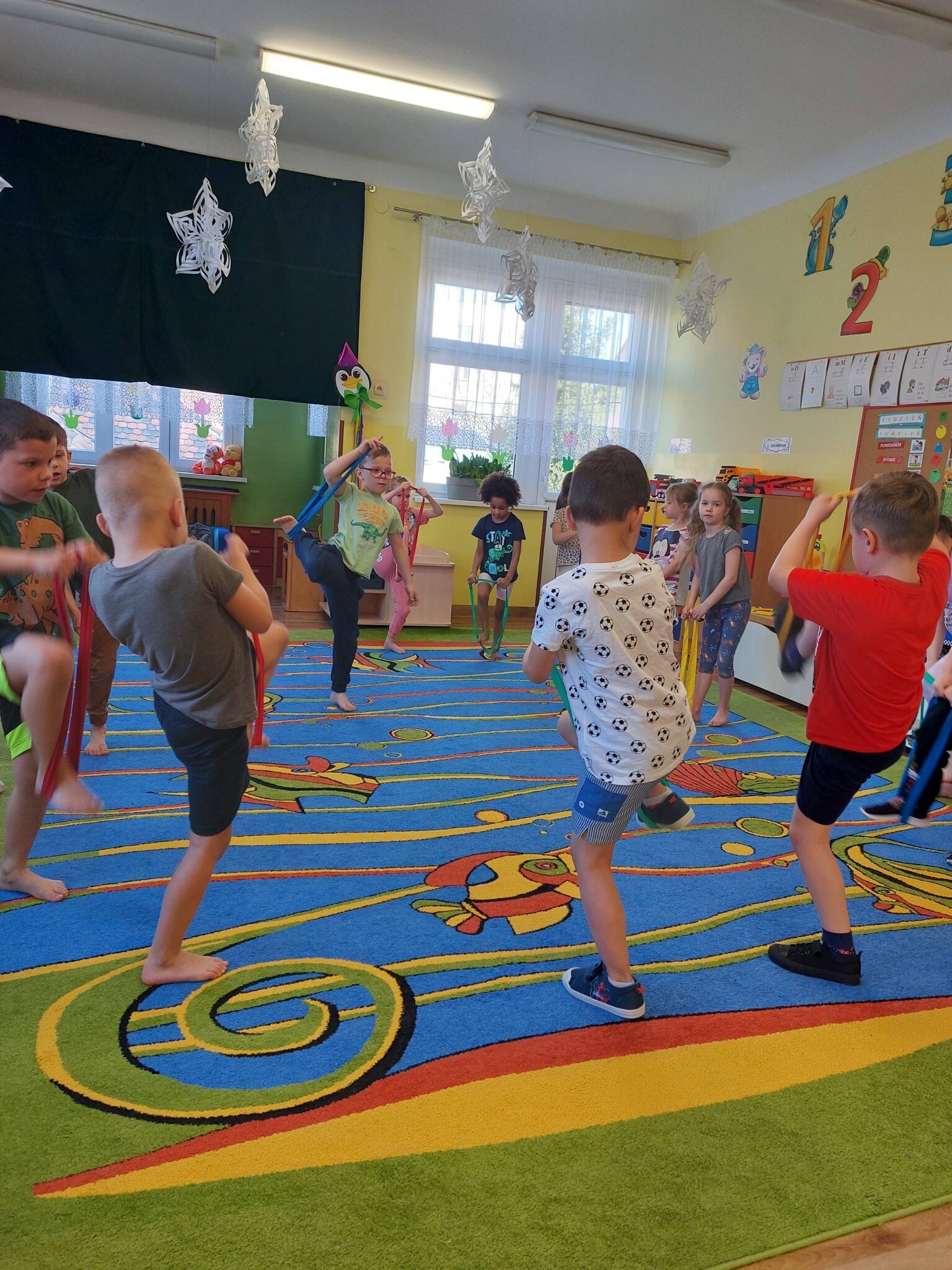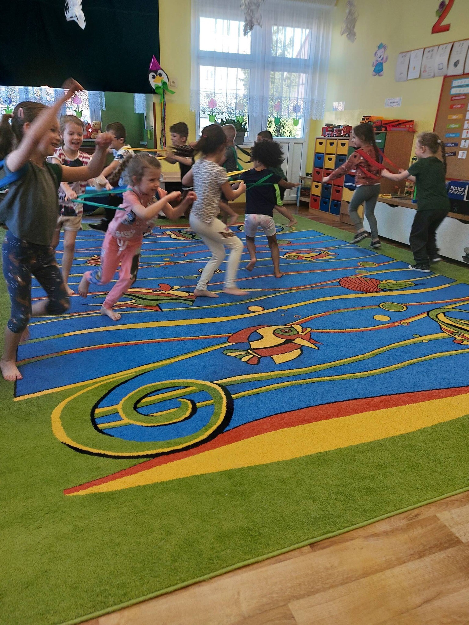Zdrowo na sportowo - zajęcia ruchowe z szarfami u ,,Sówek ''.